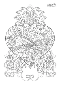 This cheerful adult coloring page figuratively gives wings to your heart – you can put your favorite combination of reds and pinks to complete the sheet. The flying, free heart is bordered with flowers, taking its beauty up by a few notches.
